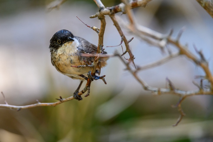 It has a distinctive appearance, with a dark grey head, white underparts, and a long tail. This warbler favours open woodlands, scrublands, and areas with scattered trees, often foraging in the undergrowth for insects, spiders, and small invertebrates.