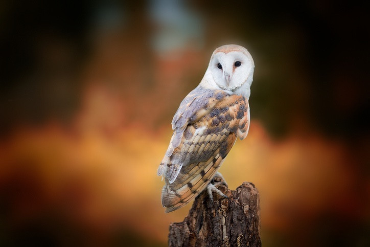 Recognised by its heart-shaped facial disc, golden-brown and white plumage, and dark eyes, the Barn Owl possesses excellent night vision and hearing, enabling it to hunt effectively in low-light conditions. It preys primarily on small mammals such as voles and mice, often hunting silently from a perch before swooping down to capture its prey.